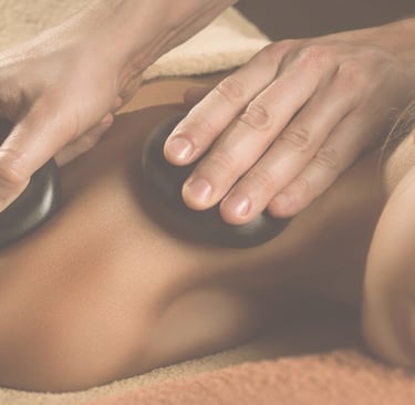 Hot stone massage is a deeply relaxing and therapeutic treatment that uses smooth, heated basalt stones placed on key areas of the body and incorporated into massage techniques. The warmth of the stones helps relax muscles more quickly, allowing deeper work without excessive pressure, while encouraging a profound sense of calm and relaxation.